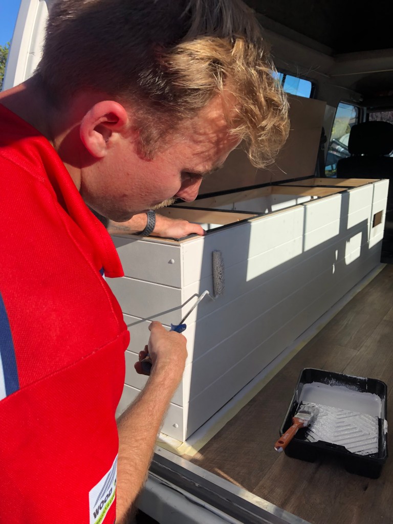 As we went on, things began to get real as the inside of the troopy began to take shape! The constant battle between Lauren’s aesthetic ideas and Steve’s dad’s realism is always enjoyable and by this stage we have learnt that Steve hates painting, Lauren loves winding people up and the difference between Watts, Amps and Volts is very confusing! In saying that, it’s pretty cool how the DC2DC charger connects our front battery to our rear lithium battery! Also, very happy with our fridge purchase in order to keep beverages and other items cold.