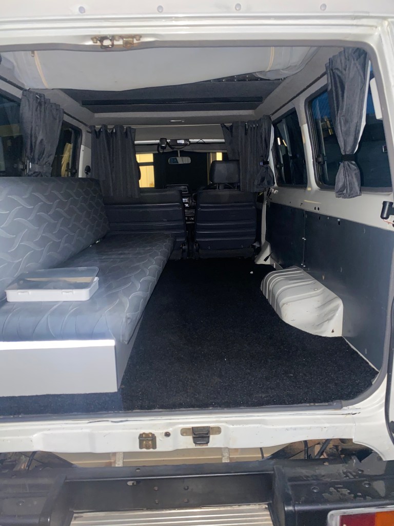 We finally are on to the final more aesthetic phase of the build. Lauren got right into the sewing making up some curtains and covers for the bench top cushions and although she did an awesome job, she quickly realised that sewing should be left to the professionals! The bench top in addition to the black sink really came out a treat and in combination with the rattan webbing door mentioned early and white paint, I’d say our Troop finally feels like a home! If anyone needs some interior design help, please contact professionals as we are unavailable. In saying that, we loved the process of making our Troop and we are always happy to give out advice as long as we are not responsible for any damage both physical or emotional.