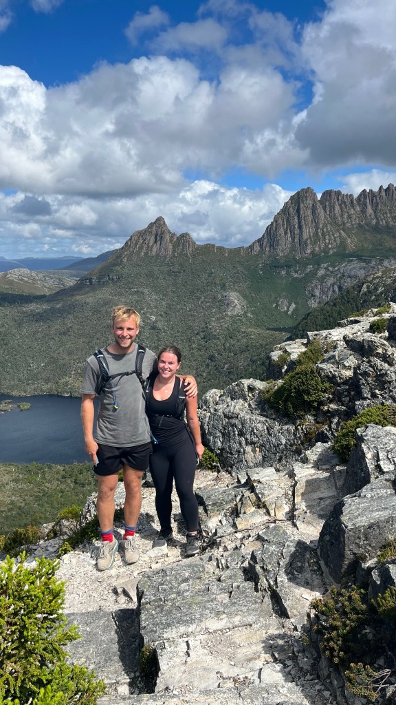 The walk was both scenic and quite challenging, with an early wombat sighting being a personal highlight. The start of the walk definitely had Lord of the Rings vibes, which due to Lauren’s general avoidance of movies, I’m not sure she appreciated, but still thought that it was beautiful. We passed through waterfalls and some beautiful lakes and made it to the steep section… this was less scenic and something that we have learnt is that whenever a walk has chains to assist you coming up and down, its a pretty serious walk! The view at the lookout was definitely worth it with a 360 degree view of the mountain and surrounding area definitely worth the tough climb up!