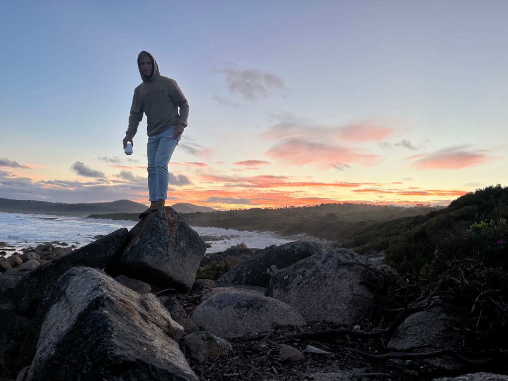 We finally made it to the coast and decided that a place called Cosy Corner in the renowned Bay of Fires region would be a nice spot to camp. Although beautiful, Cosy Corner wasn’t so Cosy in terms of the swell with an offshore Easterly bringing some big boy waves! The famous fiery orange rocks and blue water still was a sight to behold even with the rough seas.