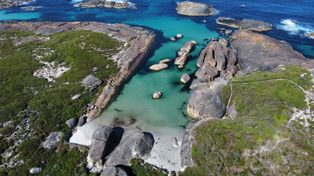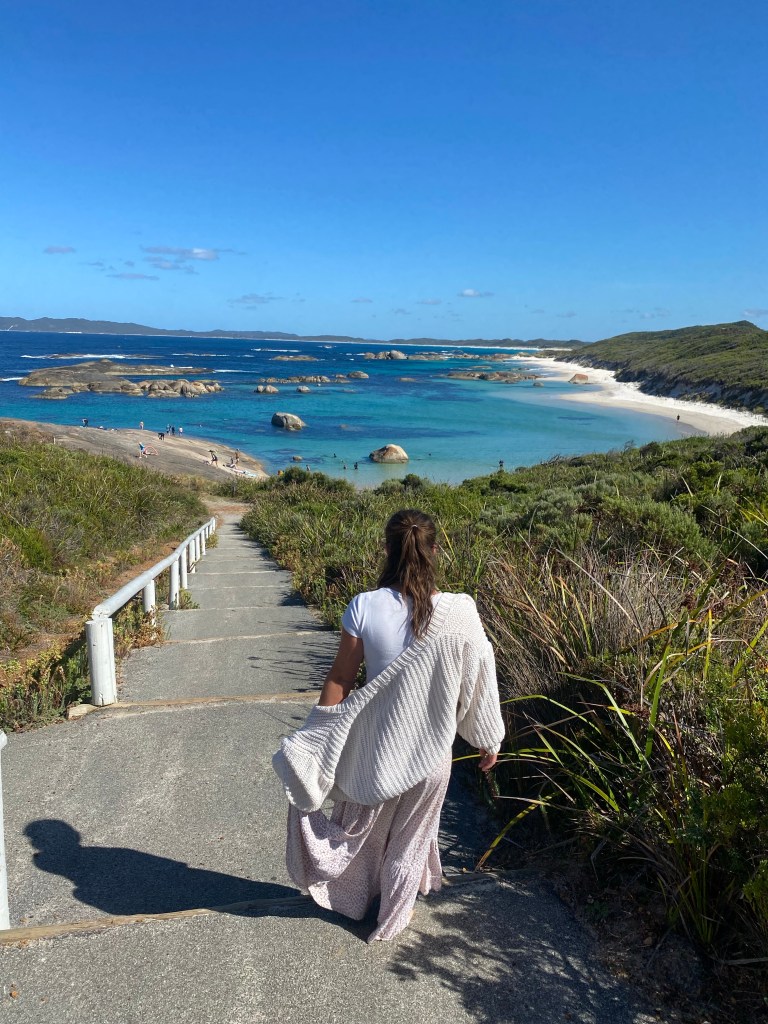 After spending another day based at the campsite being locked down due to the weather, we had a think about our plans for the next few days and decided to leave Parry Beach a day early and continue our journey West. After doing some research and looking on google maps, we made plans to check out a few of the sites on the way while the sun was shining. Our first stop was Peaceful Bay and again, we found a hidden gem with a protected bay and beach living up to its name. We spent lovely day relaxing on the beach and swimming in the clear water, preparing ourselves for the long drive to Margaret River.