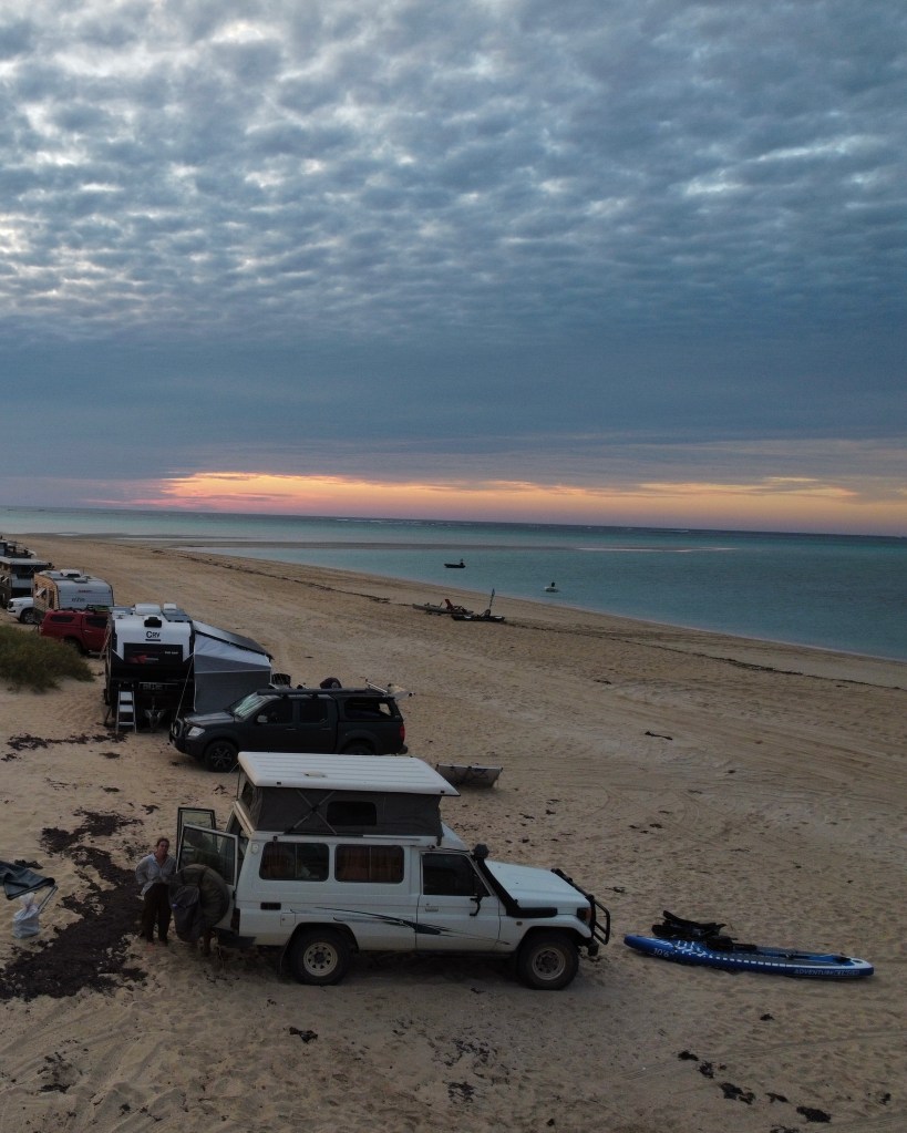We had a lovely time camping right on the beach, protected from the wind by the curving bay. We even managed to fly the drone out and capture some pretty special shots of the reef and the special blue water.