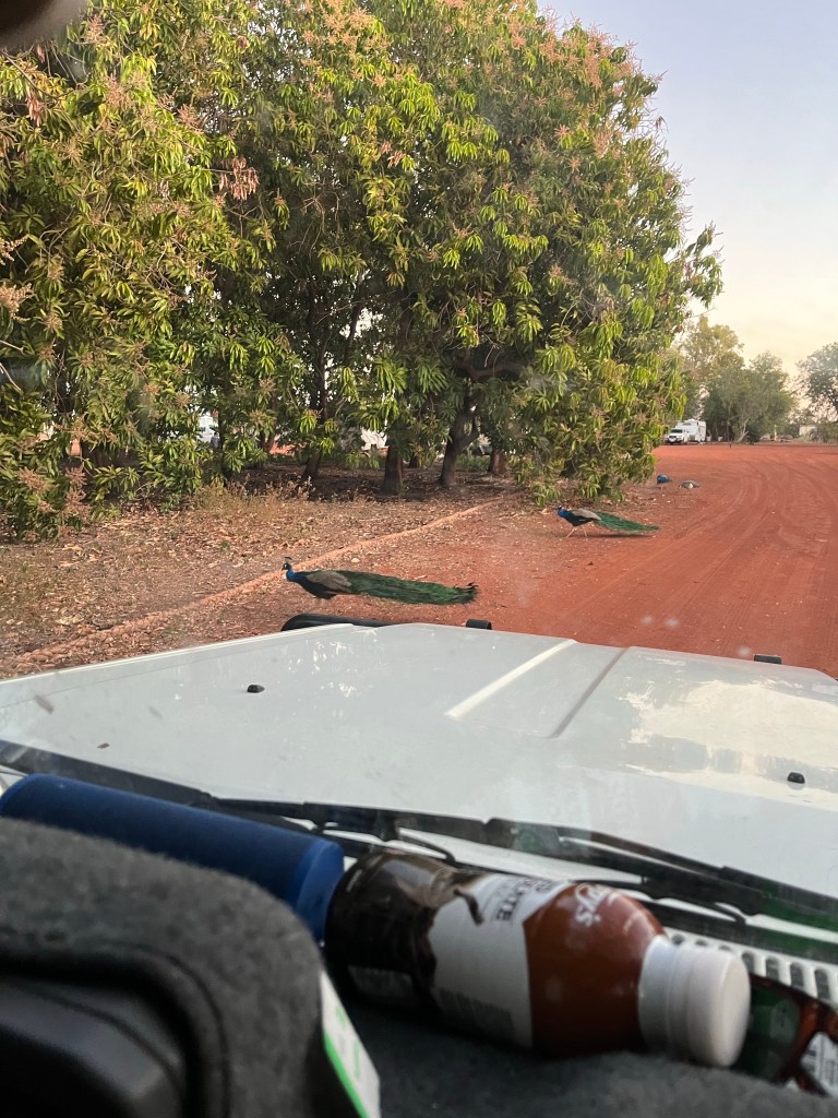 Back on the road after some amazing beach camping, we had a long drive ahead of us to Broome. The weather was getting hotter and hotter the further north we headed and after a sweaty day of driving, we decided accommodation with a shower was in order. We decided on an iconic Australian roadhouse in the form of Sandfire roadhouse and were surprised to find instead of guard dogs or kangaroos welcoming us, a flock of peacocks were patrolling the drive way! Outback roadhouses never disappoint and we a good nights sleep underneath the shade of a mango tree.