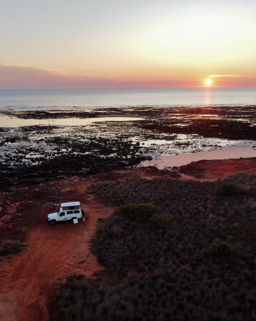 We again experienced the magic of North West WA tides, with the ocean disappearing in the evening and creating a maze of rock pools. Again, we used this as a bathing opportunity and also a great spot to fly the drone over!