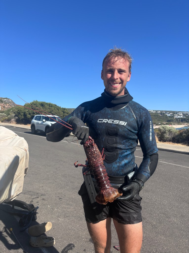 It didn’t take long for the investment to pay off, as later that very afternoon Steve went for a shore dive and picked up our first cray of this lap!
